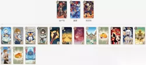 NO.4 迪卢克武装牌组 阵容的核心主C为迪卢克,需要给迪卢克装备上“狼的末路”、“炽烈的炎之魔女”、“流火焦灼”,以及部署支援牌“艾琳”,随后频繁使用元素战技输出即可。开局上场莫娜使用元素战技承担伤害,配合班尼特的元素战技打出蒸发效果,尽可能地拖到上述卡牌装备完毕,再使用迪卢克不断输出。