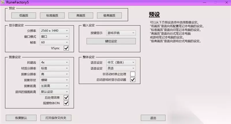 游戏设置(语言与控制) 在每次开始游戏时,都可以从预设面板中调整游戏的图像,语言和控制设置。