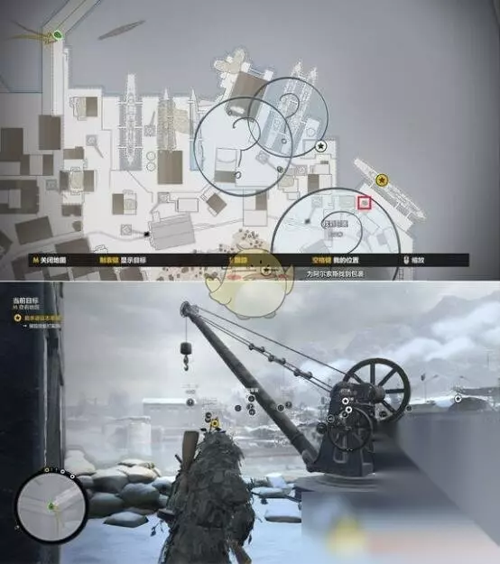 第四关 落里诺造船厂 位置:关卡中右下角附近 目标:关卡右上吊塔上的狙击手 距离:436m左右