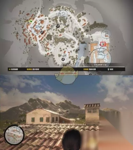 第五关 阿布鲁齐修道院 位置:关卡一开始的房顶 目标:修道院正门2层的小兵 距离:525m左右