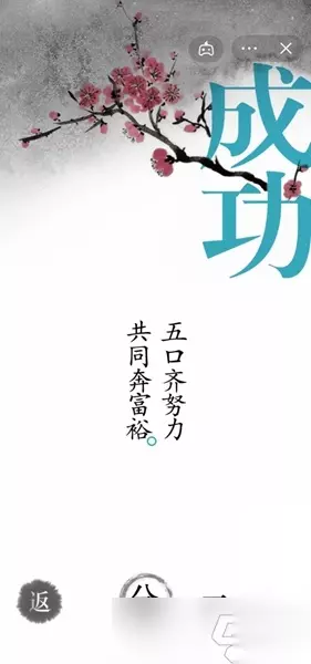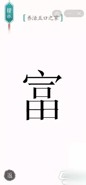 3、然后把五个口拼凑起来,组成【富】字,完成关卡。