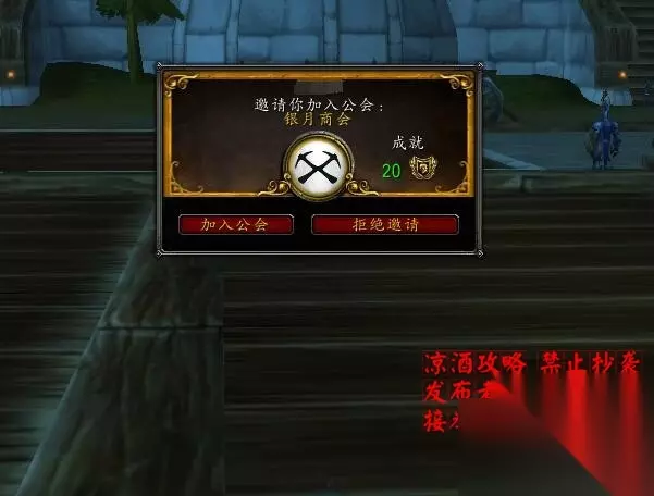 到这里马上就有忍不住的小伙伴要问了,试玩号不是不能交易、不能发邮件出去么?那你偷一万个垃圾箱又能怎么样? 这里我告诉大家一个特殊的试玩号流通物品的渠道,目前还好使,以后可能就不好使了,所以如果有以后突然看到我这篇攻略的玩家,发现不好使了不要骂我。 公会银行!试玩号可以把东西存到公会银行! 首先,我们需要一个有权限的公会,最好是你小号的仓库公会,没有的话可以去出生地比如北郡修道院或者逐日岛,让刚建号没有工会的小号给你签名,你给他们包包,一般人都会给你签名,五个签名就可以建一个公会了,把签名的都踢了,确定公会只有你的号,公会银行有很多页,可以作为私人银行使用。 现在,我把我的刚建的试玩盗贼拉到我的仓库公会: