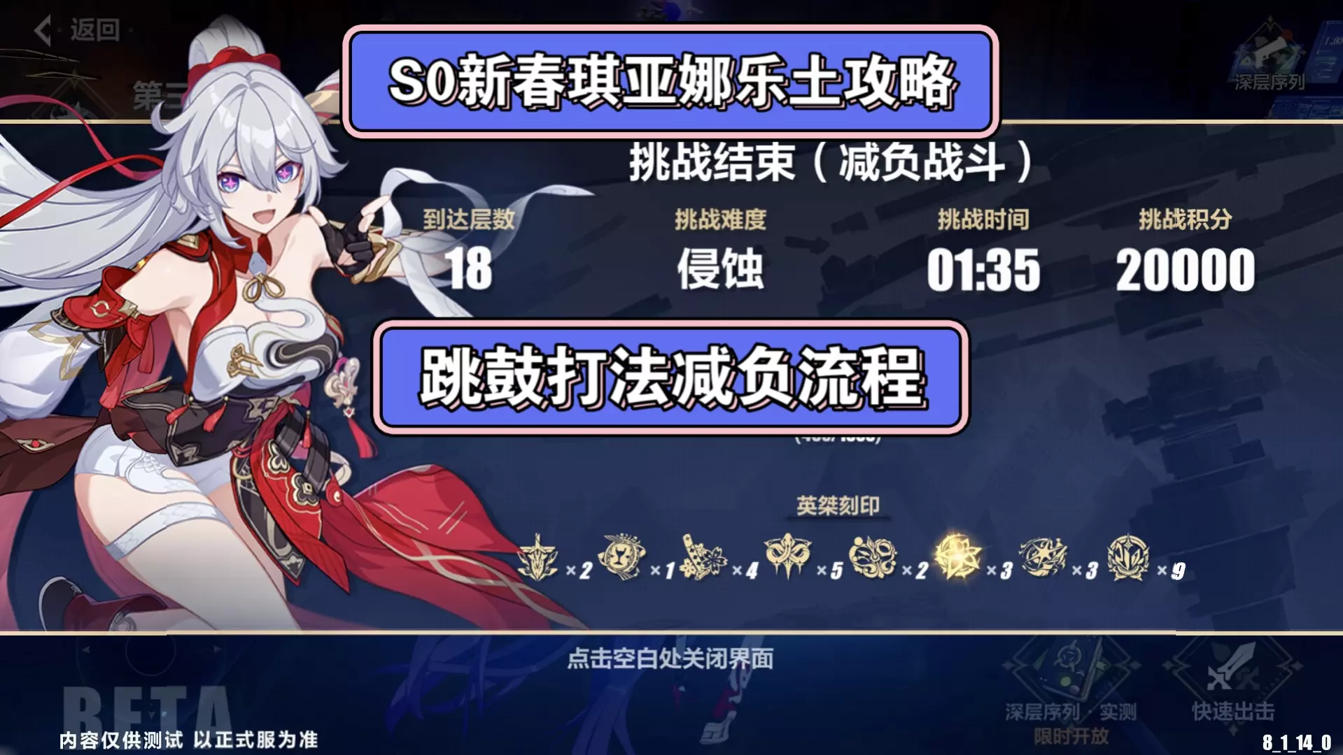 游戏:崩坏3 S0新春琪亚娜,95秒往世乐土2.5难度。减负打法 追忆之证带因你而在的故事,前7层盈愿+绮梦+逢吉,3无限+3刹那开核心上。之后可繁星红黄黑,空…