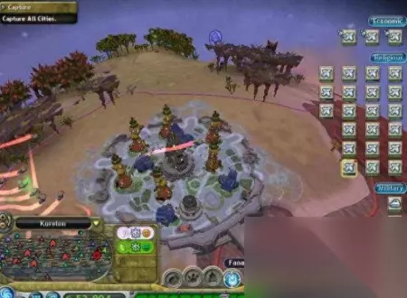 在接触了《孢子》的生命阶段、生物阶段和部落阶段后,这款游戏将进入到正式的策略战争类游戏和星际类游戏,这就是接下来的文明阶段和太空阶段。 如果说之前是如何从一个细胞演变为一个强大的部落,那么接下来的游戏内容就是如何称霸星球,乃至星系和宇宙。这里面涉及了庞大的运营策略和经济思考,还有许多的军事、艺术、结构上的东西,我将分为文明阶段和太空阶段为大家解析。 第四阶段——文明阶段的玩法 当你的部落成功击败其它部落,建立了自己个市政厅,部落就开始进入文明阶段,这是一个和《红色警戒》相似的模式,但是又多了许多选择。