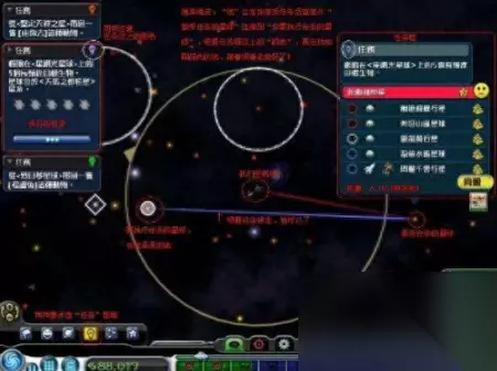 《孢子》的地图设计为整个银河星系,无数个光点就是无数个星球、帝国,数量达到了40亿,甚至你可以在银河系中穿梭,找到我们人类的故乡地球,而且据传言,那也是《孢子》的结局所在。 太空阶段主要是三个流程,一个是开始接触主线任务,第二个就是运营经济进行殖民扩张,第三个就是自由玩法。 ①接触任务 任务系统主要是因为太空阶段太过庞大,担心有些玩家玩的没头没脑的,所以推出任务系统给大家,有一个主线可以跟着走。 游戏里面的任务更像是一个指引你探索《孢子》世界的新手教程,无非是叫你去哪个星球抓些什么物种,又或者是去哪儿解除一下星球上的瘟疫等等。