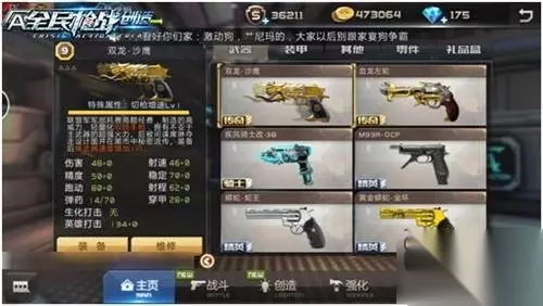 5.双龙沙漠之鹰 上榜理由:手枪点射神器。双龙在手枪中也是首屈一指的存在,高速点射,远程点射在爆破等大型地图中可发挥极其强大的优势,威力强大,弹药充足,铸就一代传奇,高爆头率也是深得人心,使得它在众玩家心中有了不错的定位。也是很多HPL联赛大神的最爱。