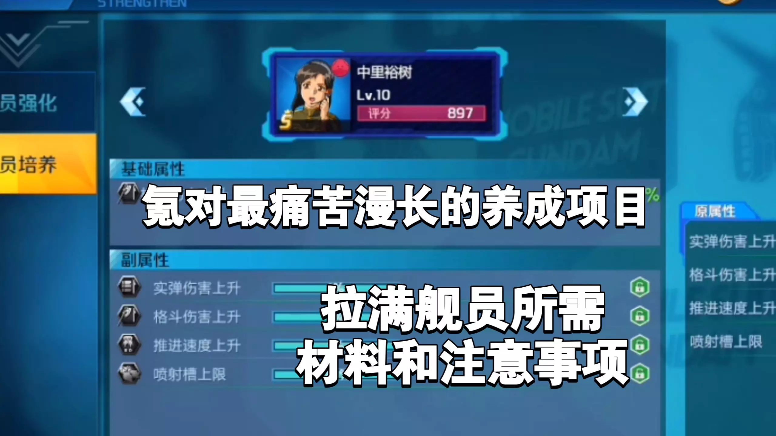 这是一篇高达类手游的舰员养成攻略,介绍舰员搭配教学,提到舰员副属性全靠运气刷取,游戏养成周期长,还展示了攻击、防御、辅助类舰员及舰长的属性与编队搭配。