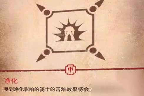 净化:受到净化影响的骑士的苦难效果将会立即被移除。