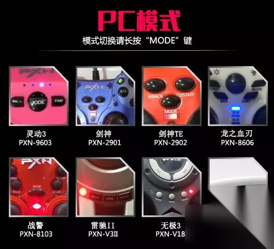 1、连接好设备,驱动中测试按键正常之后,先调好方向盘的模式,可以对照下图看下PC模式的指示灯
