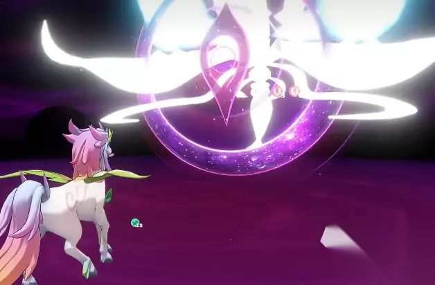 在输入名字后,这只精灵就会被强制放到场中,这个上场可以无视环境,不管是在战斗中还是在大地图中进行探索的时候,都是可以做到一键切换的,比起打开背包来回切换精灵来说,是要方便许多的。