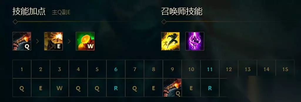 技能加点:主Q副E,有R点R(一般一级都学Q,学E桶子看个人哈) 召唤师技能:闪现+传送 天赋以及出装