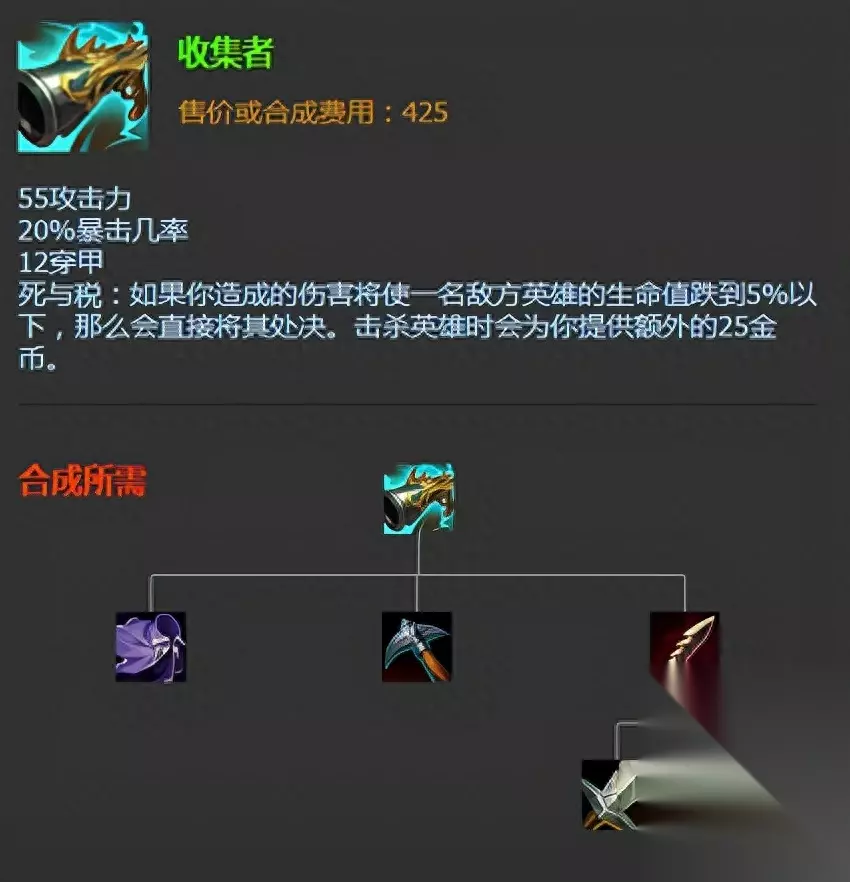 收集者:当前版本对于C位来说,走暴击流第二件出,性价比最高的装备,没有之一,别问为什么,试过就知道啦!