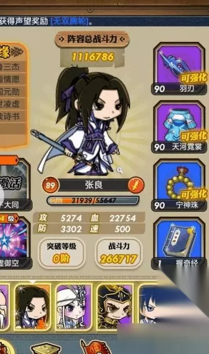 获得张良后需要对他的属性和技能有充分了解。张良的初始属性他的气血值为九百五十七,攻击力为二百四十八,防御力为一百一十,速度属性为五百。这些基础属性决定了张良在战斗中的定位和表现。张良被归类为辅助或策略型英雄,这种定位决定了他的技能设计方向。张良的技能设计体现了其作为谋士的特点,技能效果侧重于辅助和控制,而非直接造成高额伤害。这种设计思路符合历史人物张良以智谋著称的形象。