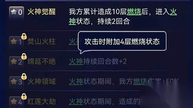 在培养建议方面,1星后激活秒2算是性价比较高的选择,或者在不搭配燃烧伙伴的情况下,纯粹充当单秒伙伴使用,0星也是不错的选择。 2星增加火神持续回合,对阵容有一定的要求,若没有金翼则无法发挥祝融升至2星的价值,3、4、5星则因人而异,追求全满的少侠才可一睹八荒圣炎的威力~ 虽现阶段未发现特别适合祝融秒2及快速叠加异常的关卡,但相信未来的玩法中一定会有他的一席之地!比如说下期的牛刀,大家都有思路了吗~