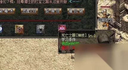裂神符的特点就是一次攻击,三次伤害,不过需要2个以上的怪物才能触发,这个是道士PK的一个神技,同时也是单挑BOSS的神技能,后期必学(单挑BOSS-召唤宠物,开全体模式,裂神弹就对了,超高几率触发切割勋章特效) 群毒选择无视,因为大家都懂。 终极技能-死亡之眼