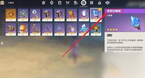 2.装备流明石触媒 打开小道具背包,点击装备【流明石触媒】。