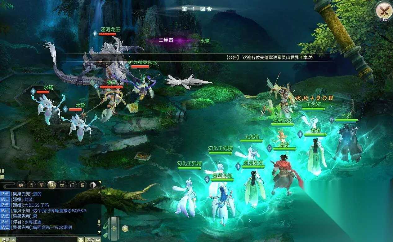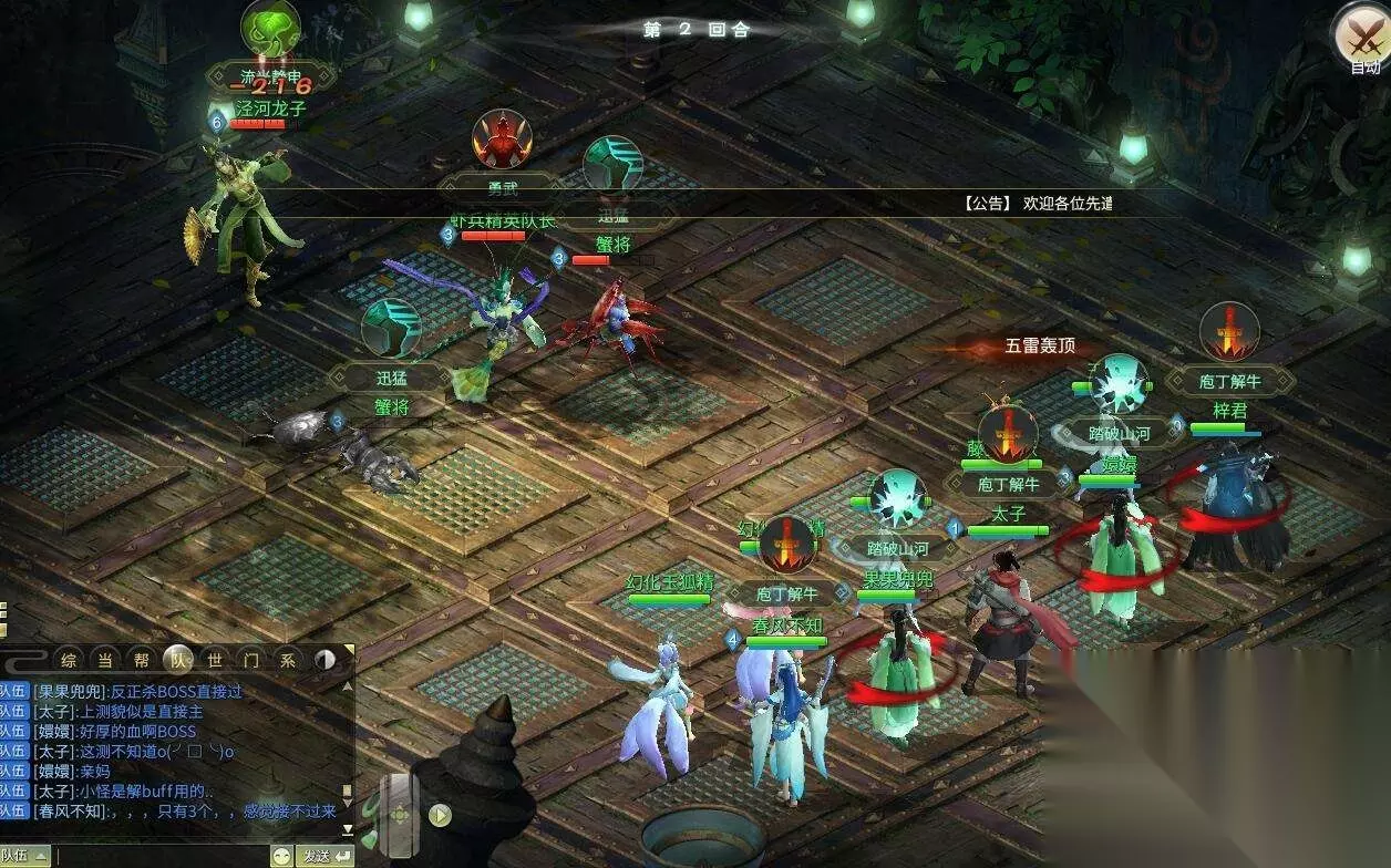 受到BOSS攻击的玩家身上会中一个叫血光之灾的BUFF,会加深伤害,基本中了以后BOSS第二次攻击能直接秒你,需要杀死小怪才能解除。 推荐封掉虾兵队长后直接打BOSS,中BUFF的直接给BOSS打死然后复活拉起来,解BUFF是永远解不过来的,有封的情况下封掉会放AOE的虾兵队长,总体来说非常简单的一个BOSS,不过和老一一样考验DPS的输出能力,DPS过慢会出现团灭。 打完后又是一路出几组夜叉小怪,打完后直接开启最终BOSS泾河龙王。 泾河龙王: