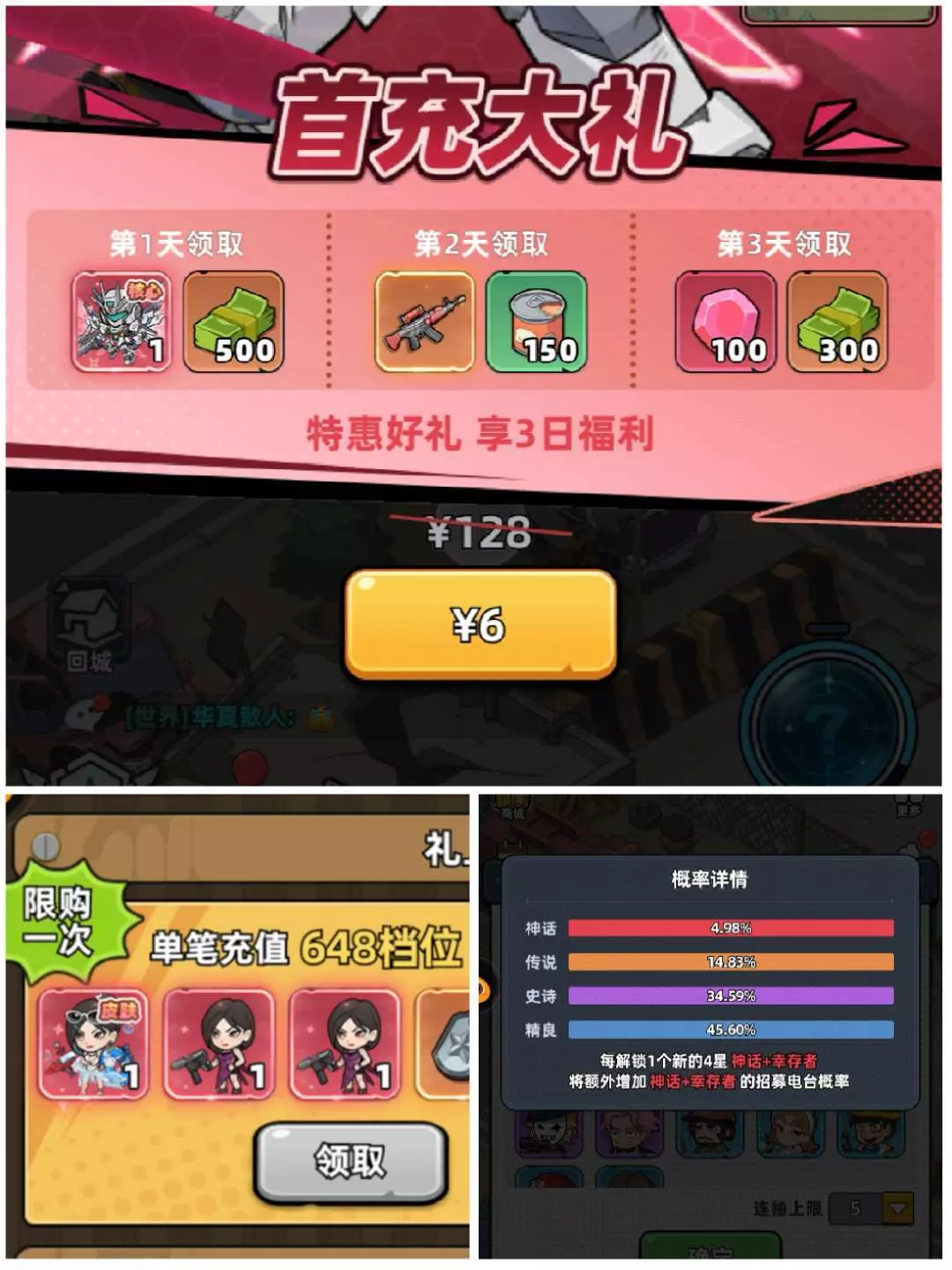 或许玩家也会明显的发现整个屏幕的右下角会存在招募的选择,只要玩家杀的小怪数量多,那么就能招募各种各样的人物,可能表面看起来感觉这种的人物获得方式特别的便捷,但是持续的抽奖下去,却可以发现该奖池所获得的人物都是一些低品质的类型,至于红色品质更高类型的角色,只能通过游戏固定的几种赠送的方式给玩家带来获得机会,其余都得通过类似于氪金礼包的方法来进行购买,所以本质上从人物的获得,就已经提供了很多区别的对待。