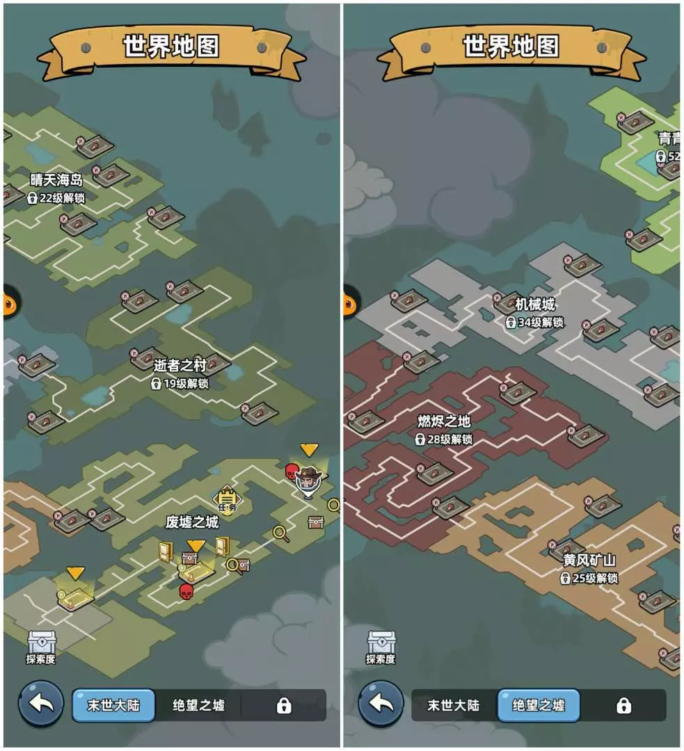 玩法的内容主要就是在一整张地图,依靠任务的要求逐渐前往不同的区域,根据目标击杀不同敌人的数量,在通过其中所收集的各种普通的资源,解锁下一个区域的表现,加上又是一款普通的膨胀数值的内容,所以体验过程没有什么太多实际的参与感,来给整个基础的体验能提升一些拥有可玩性的价值,也是目前开头最深刻的感受。