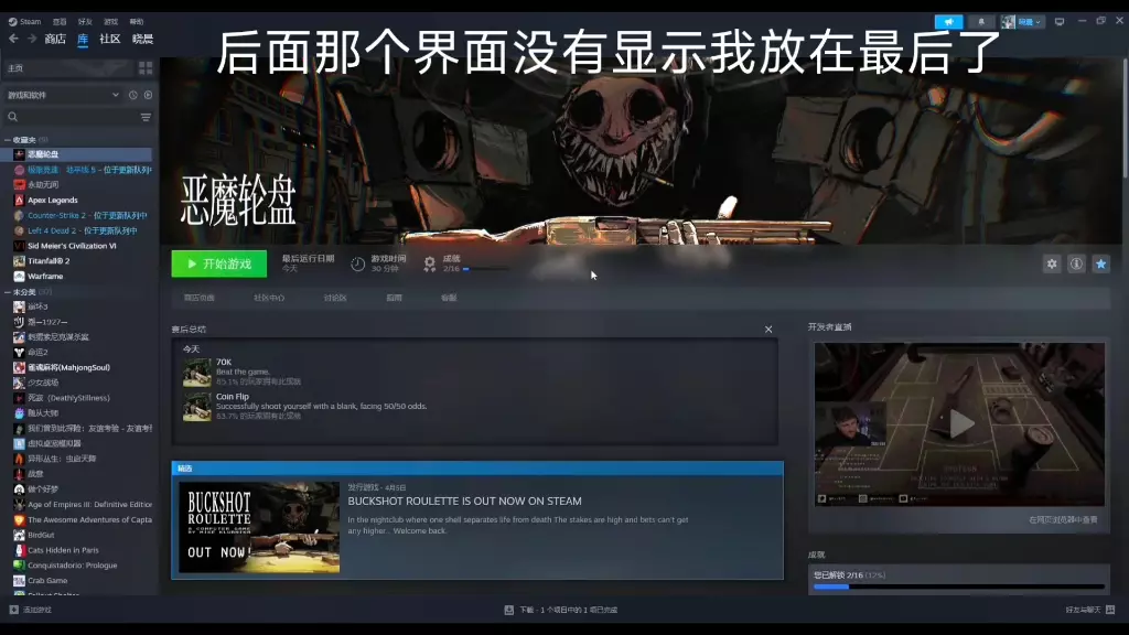 游戏:恶魔轮盘 平台:Steam