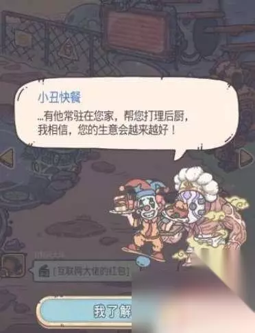3、接着听完登门拜访的小丑快餐的介绍,点击“我了解了”。