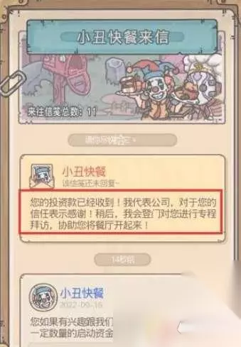 2、通过和小丑快餐回信交流,最后选择投资1000白蝌蚪与其合作开店。