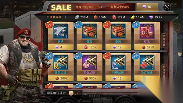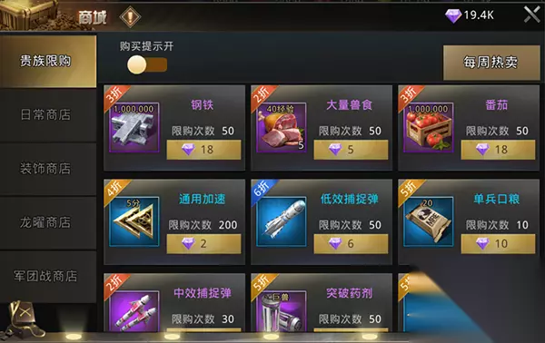 ==04黑市== 可以用资源换的全都换,至于钻石刷新,看个人消费力刷新。微小氪刷一两次就足够了。 第一排资源:2-3折可以秒;第二排加速:全秒;第三、四排道具:秒特训手册、突破药剂,其他看个人需要。