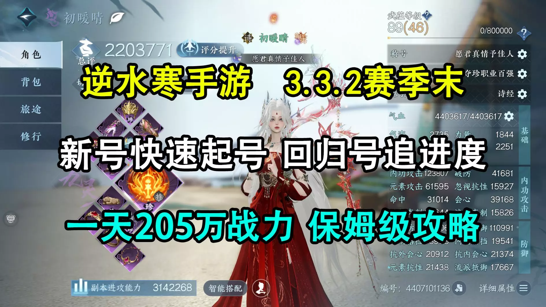 逆水寒手游3.3.2赛季末起号追进度,一天205万战力,保姆级攻略