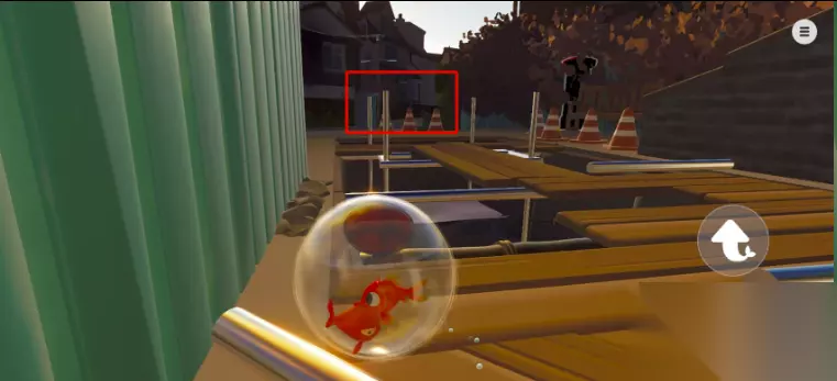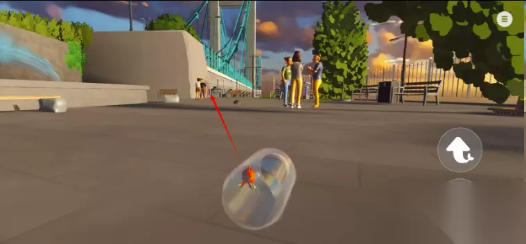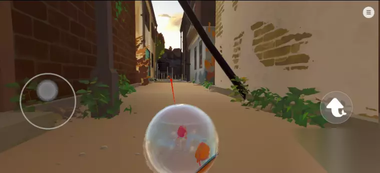 向右走找到缺口下去瓶子的操控方式跟车和球都有点不一样:右转:顶住瓶子左上方(绿色圈部分)操控杆按箭头方向操作左转:顶住瓶子右上方操控杆从右向上滑动直行:卡住中间的位置(不然很容易触碰到左转和右转位置)真的吐槽一句这个瓶子,操作方式难搞就算了,他的左右转向判定范围还很大,但凡有一点触碰到了,就会开始转瓶子,尤其是在第三关还有很多需要微操的情景。