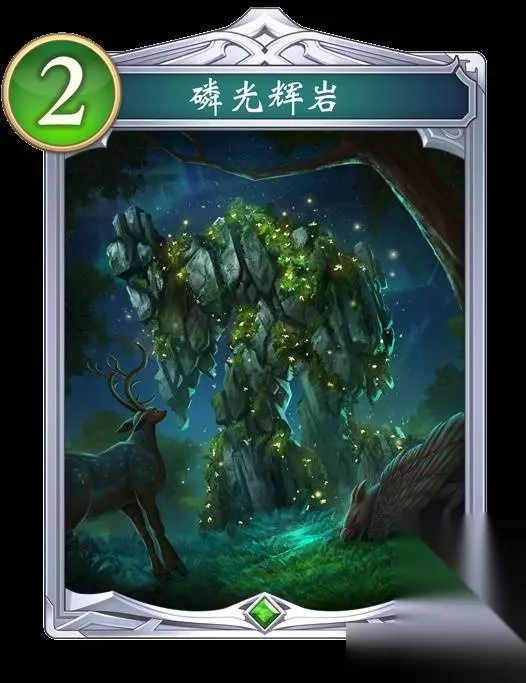 磷光辉岩 【入场曲】将1张『妖精』加入手牌。【连击_3】将1张『森林的奥秘』加入手牌。 【启动】破坏本卡牌。选择自己的战场上的1个随从,使其+1/+1。 岩石散发着暗淡的光芒,可谓偶然诞生的物华天宝。 一位艺术家靠近这件无名之作时,动物们现身了。 看着眼前仿佛等候多时的包围网,他明白了一切。 若要给这天然艺术品取名,就叫“陷阱中的男人”。