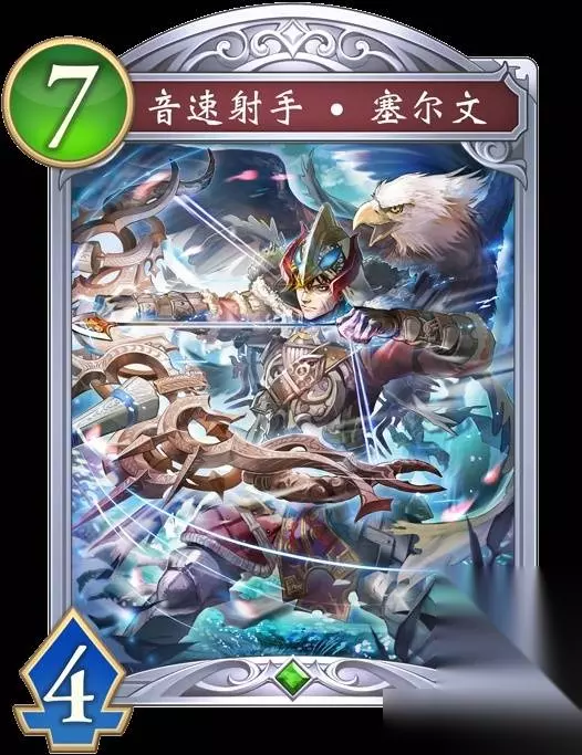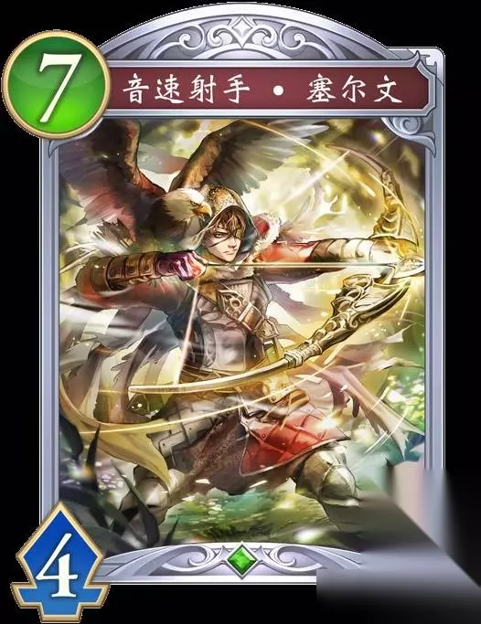 音速射手·塞尔文 【疾驰】 【超进化时】选择对手的战场上的1个随从,使其返回手牌。 进化前 猎物变则猎场变,猎场变则狩猎变。 “进入猎场就顺应其道,这就是我的狩猎方式。” 他最厉害的武器不是箭术和那双鹰眼,而是随机应变的能力。
