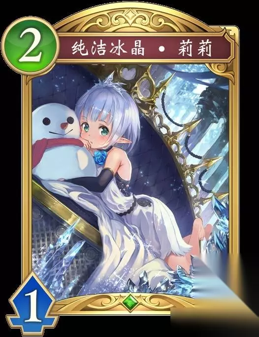 纯洁冰晶·莉莉 【入场曲】【连击_3】选择对手的战场上的1个随从,使其生命值变为1。 【进化时】抽取1张卡牌。选择对手的战场上的1张随从,对其造成1点伤害。 进化前 冰晶族欢迎从冰晶宫正门走进来的人。 前来迎接的是,内心如新雪般纯真洁白的少女。 魔法跃动,雪花飞舞,全心全意地招待来客。 “莉莉会用魔法好好招待你的!”