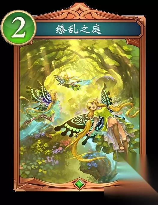 缭乱之庭 【入场曲】将1张『妖精』加入手牌。 【吟唱_2】自己的妖精·随从进入战场时,对对手的战场上的随机1个随从造成1点伤害。 偷猎者能让漂亮的花朵盛开呢!