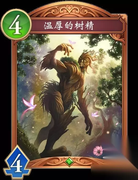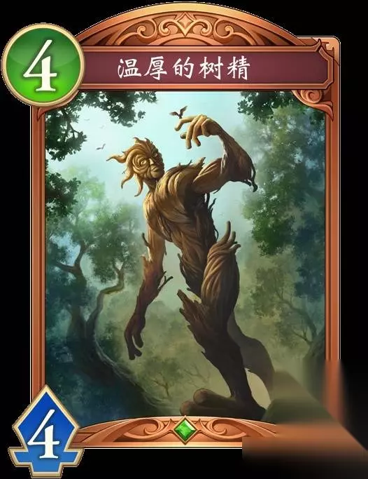 温厚的树精 【入场曲】【连击_3】本随从进化。 【攻击时】回复自己的主战者2点生命值。 进化前 那并非树枝而是手指,那并非树根而是双脚。 它既非人类亦非树木,放眼森林也是异端的存在。 森林的住民都会避开它,只有小鸟偶尔会来歇息。 就在它日日夜夜自我厌恶时,森林中出现了偷猎者。