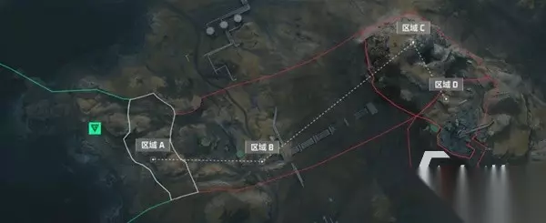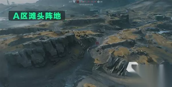 三、全面战场攀升地图 这个地图和前两个不同,前两个主要是进行物资的收集,而这个玩法当中,主要就是分为了攻守双方,会在四个不同的区域展开争夺。A区据点是滩头阵地,这里是双方争夺的第一个地方,注意这里的地形,基本是没有掩体存在的。北边是一片高地,能够俯瞰到整个A点的。第一个据点进攻方的压力相对来说是比较小的,可以在多个地点登陆。