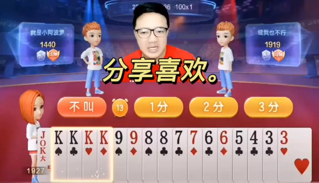 三岁玩牌破釜沉舟四个3的大胆一炸后期残局细腻的行牌为自己争取到了胜利!