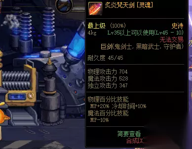 毕竟等级那么低的武器在现版本除了收藏和幻化之外没有多大的意义了,20级的“赤炎梵天剑(旧)”现在已经绝版了,以前是在“天空之城”地区的深渊中爆出来的。45级的“赤炎梵天剑”以前在40级到50级的深渊地图中可以爆出来,现在也已经绝版,但是我们可以刷到它的灵魂版,我们可以通过通关“亡者峡谷”区域中的“灵魂之冢”地图来获得“灵魂武器袖珍罐”。
