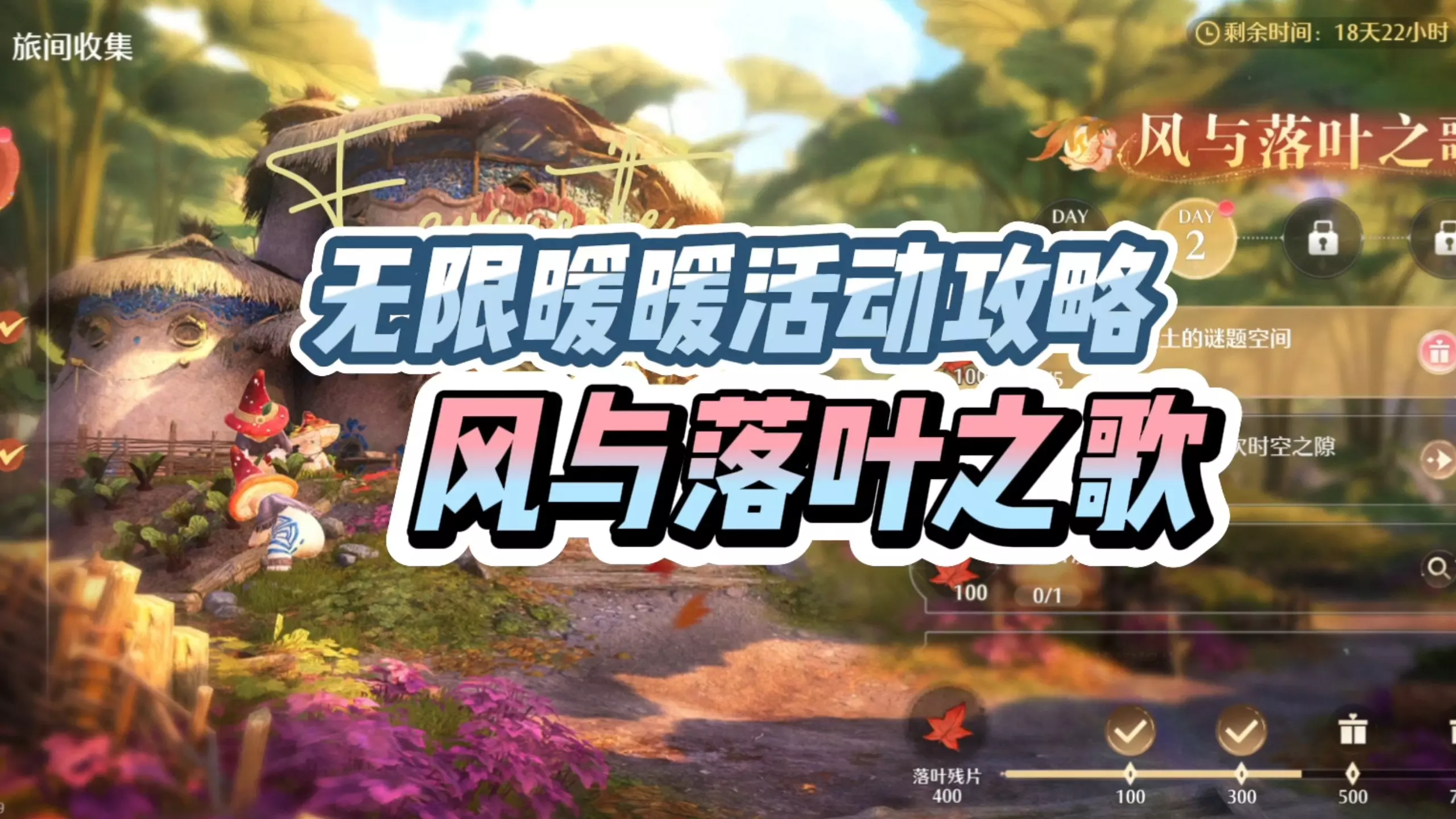 这是《无限暖暖》2.0版本“风与落叶之歌”DAY3的攻略,展示了用黏黏爪“勾”中浮絮巨鸥等任务,还呈现了转转滑梯、飞叶激流等任务场景,帮助玩家完成当日旅间收集任务。
