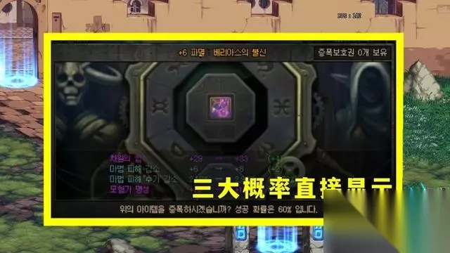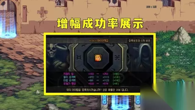 三大概率必定显示 在韩服,强化装备、增幅装备、锻造武器的时候,都会在界面显示“成功率”,同时,如果是吃了药剂、或者使用了增幅/强化宠物、增加的成功率也会显示在界面上,成功率多少一目了然。