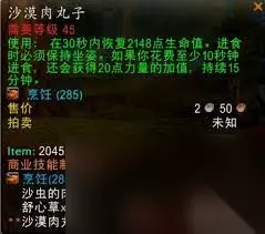 制作方法 当玩家集齐材料后,在烹饪技能界面中找到沙漠肉丸子的制作选项,点击即可制作出美味的沙漠肉丸子。每个沙漠肉丸子能为玩家恢复一定量的生命值和法力值,是冒险途中不可多得的补给佳品。 总之,掌握沙漠肉丸子的配方及获取方法,能让玩家在魔兽世界的旅途中更加从容。无论是升级打怪还是参与团队活动,一份美味的沙漠肉丸子都可能成为扭转局势的关键助力。大家快去游戏中尝试获取并制作吧!