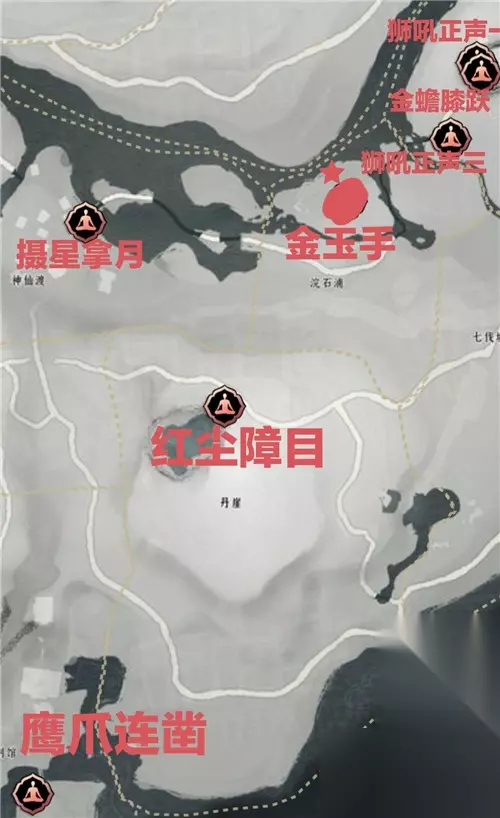 1:飞蟾步仞和逐影用蹊跷兑换,可在齐声npc兑换 2:前往北盟遗址。在遗址的入口处,与NPC烈不尽对话接受任务,凌虚一指完成清河侠迹之一,清河如故 3:狮吼正声需敲四个钟,敲完最后一个钟就可以直接获得 4:金玉手浣石浦右上角不起眼小木屋门口找严奇人,跟雕像一起,仔细找 5:红尘障目要完成残章红尘无无眼,在丹涯大树下找天不收接触 6:摄星拿月神仙渡找仇越海偷师,再找傍边人试试手,在找仇越海即可 7:金蟾膝跃将军祠进大门往祠堂走左边一直跳跃的就是,触发即可 8:太白醉月不羡仙找买酒的商人郝久,切换多人模式再找,每种来一两瓶,切换单人模式,喝酒到醉在上即可完成 9:鹰爪连凿春秋别馆高山山顶,看见一只鹰,看下面傍边有蛋触发喂食观察偷师即可 10:杳无形需探游偷师取之有道隐月山天涯客找仇越海接触傍边有人在哪可观看 11:流星坠火叶万山特定出招卸势叠满后打败他即可 12:太极,图中乾坤挪移是太极,完成清河侠迹六即可 13:萤火辉夜需解锁萤渊镇守,去指定地点把萤火虫全搜集即可 14:万钧坠荒魂村红色据点所有人打败即可 15:凌云踏将军祠侠之冢尸体接触即可