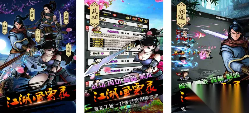 在国风手绘风格中,门派较多,且没有转职的身份和次数限制,玩家的江湖体验层次丰富。在玩法方面,玩家不仅可以学习武林秘籍,可以加入重roguelike元素的战斗地图中,比如新地图的漠北草原,不断构建卡组是一大亮点,也是通关的秘诀。在武学系统中,除了套装之外,玩家还可以拥有神兵木剑,并且在多处玩法上融合了经脉等元素,玩法多多。 扫码下载该游戏 高速下载 普通下载 优先233乐园APP下载 3、《江湖风云录》