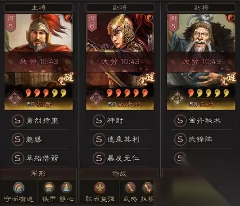 三国志·战略版三国志战略版程普另类黑科技,爆锤一切满红弓兵!如下: 作者:三国志战略版配将君 大家好,我是三战配将君,每天帮你配将开荒冲榜,和你说求贤令的武将选择,希望能帮到你! 三国志战略版太史慈这个武将是目前游戏中最全能的武将之一,能攻能辅助,只不过很多时候由于红度偏低又没合适的阵容,导致他无缘成为大哥位置的首选,只能安心打打杂了!随着官渡之战2+1玩法的出现,有大神研究出了一套全新的太史慈大哥流黑科技,弓兵内战里基本没输过,打很多主流满红队伍也同样有着一定的优势,感兴趣的可以研究一下! 官渡武锋弓: 程普:魅惑+草船借箭(全统) 兵书推荐:守而+守势+防备 太史慈:速乘其利/当锋摧决+暴戾无仁(全武+20速度) 兵书推荐:胜而+武略+执锐 左慈:武锋阵+锦帆军 兵书推荐:援其必攻+散仙+励军 接线来是前线PVP战报: 只用了两千多的战损,就轻松的把麒麟弓给干翻了! 打满红天王也就小几千的战损,这兵力还具备多穿能力。 满红草船弓算是一个比较经典的阵容,也是拿捏起来吊打。 整体打下来也是优势,发挥好的时候战损也勉强能接受。 打吴骑算是劣势局,毕竟这个阵容没什么减伤,规避又被吴骑克制,尽量绕开。反正打吴骑胜率偏低,即使赢了,战损也很大。 总结:这个队伍给程普带了魅惑,主要是因为带了援护甲,至于带抚辑军民的话其实也是可以的,只不过对于共存有着比较大的影响!
