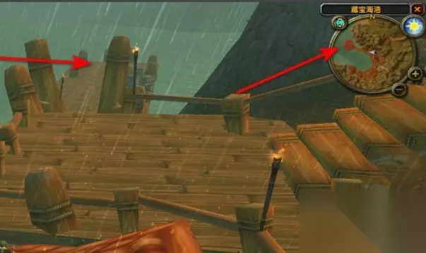 魔兽世界一箱战歌之斧在哪里 位置一览: 1、前往藏宝海湾的码头,右上角小地图红圈处