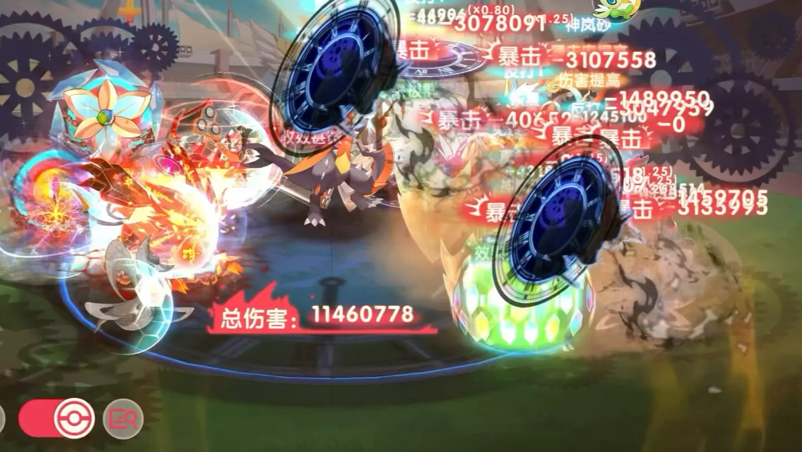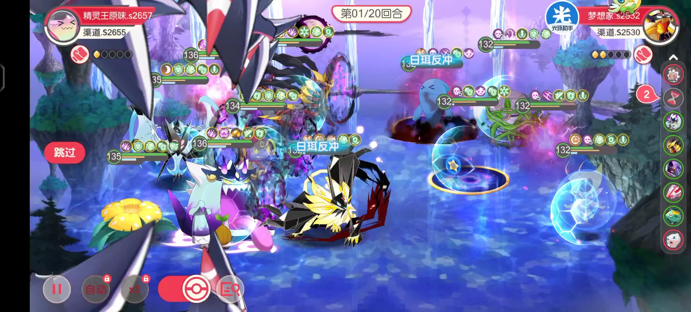 这是《口袋觉醒》的对战内容,展示了v15单核黄昏队,总战力7514632,越战v18电钢队,总战力12102371,双方战力差距460万,呈现了对战中的精灵阵容与战斗过程。