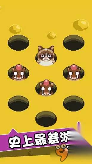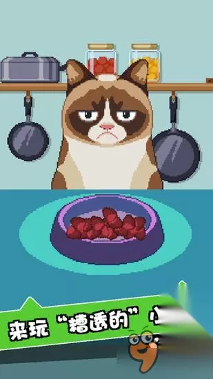 不爽猫(Grumpy Cat)又名暴躁猫,是2012人气最高的喵星人,它原名叫塔妲·索斯(Tardar Sauce),是猫咪网络推手、好莱坞经纪人拉希什(BenLashes)的明星客户,天生臭脸引人追捧。早先我们曾报道过曾推出了《妖精组合》、《天空追逐者》等手游的游戏商Lucky Kat Studio将会以“不爽猫”为主角打造一款名为《不爽猫:史上最差游戏》(Grumpy Cat’s Worst Game Ever)手游的新闻,而近日,这款作品已经正式上架双平台了。