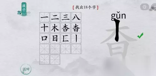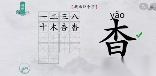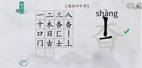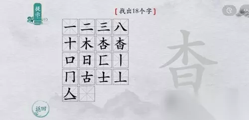 在离谱的汉字的游戏中,相信有不少小伙伴都对找字小游戏非常感兴趣吧,在单个的汉字中找出其中包含的全部文字,现在小编就为大家带来了离谱的汉字杳找出18个字怎么过的找字通关攻略了,感兴趣的小伙伴可以一起来看看哦! 杳找字攻略 1、第一行,从左往右的答案分别是:【一、二、三、八】。