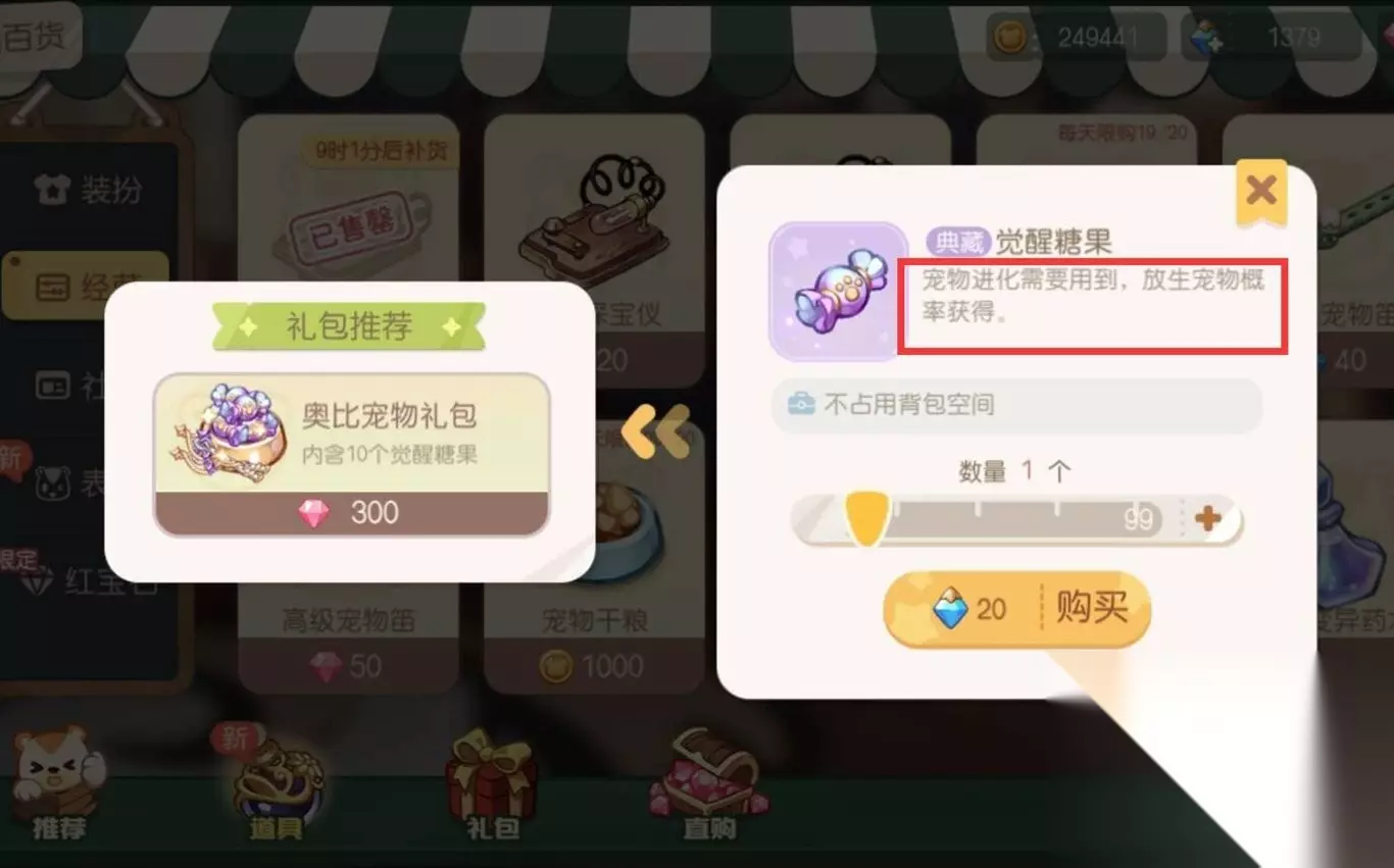 第二种获取方式是通过放生宠物也能够有概率获得觉醒糖果。