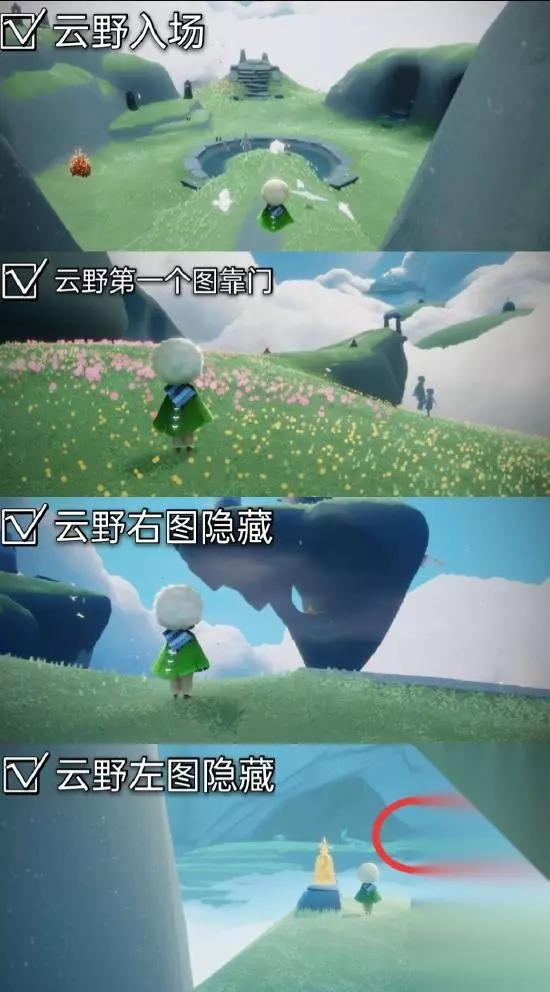 大蜡烛位置 云野入场 云野第一个图靠门 云野右图隐藏(浮石) 云野左图隐藏(入口出)
