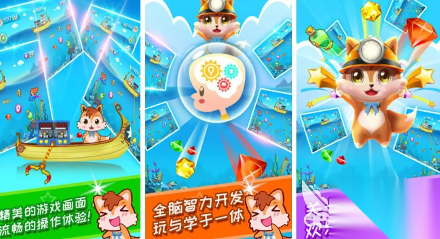 这个游戏是一个非常简单的益智游戏,游戏的主题是黄金矿工进入海底寻宝的故事。在这个游戏中,通过的关数越多,海洋生物就越丰富,甚至美丽的美人鱼也可以在游戏中看到。游戏的操作非常简单,玩家只需点击屏幕,让爪子放下触摸宝藏就会自动抓住,玩家就可以很容易地获得宝藏。 》》》》》#儿童黄金矿工#《《《《《 5、《一起来挖宝》